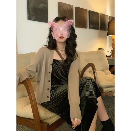 Women Long Sleeve Button Down V Neck Cute Knit Sweater Cardigan One Size(Brown)