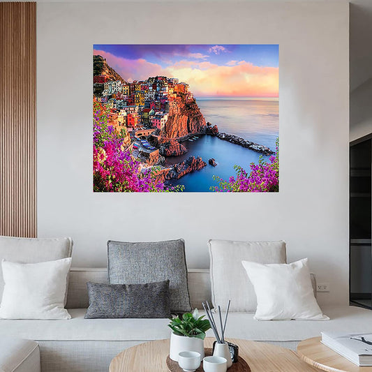 Zemalous Paint by Numbers for Adults Italy Colorful Houses in Cinque Terre Beginners Painting by Numbers, Acrylic DIY Oil Painting Kit with Brushes and Acrylic Pigment Frameless 16 X 20 inches