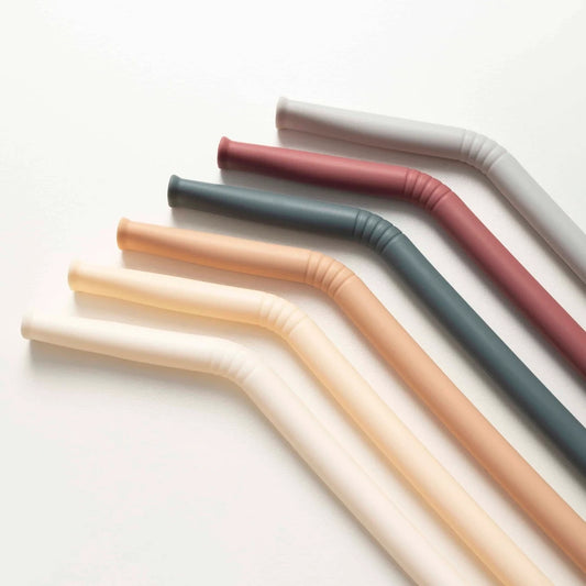eight teeth Reusable Drinking Straws w/ Cleaning Brush for Toddlers & Kids - Bendable Tips, Soft, Food-Safe, No BPA - Set of 6
