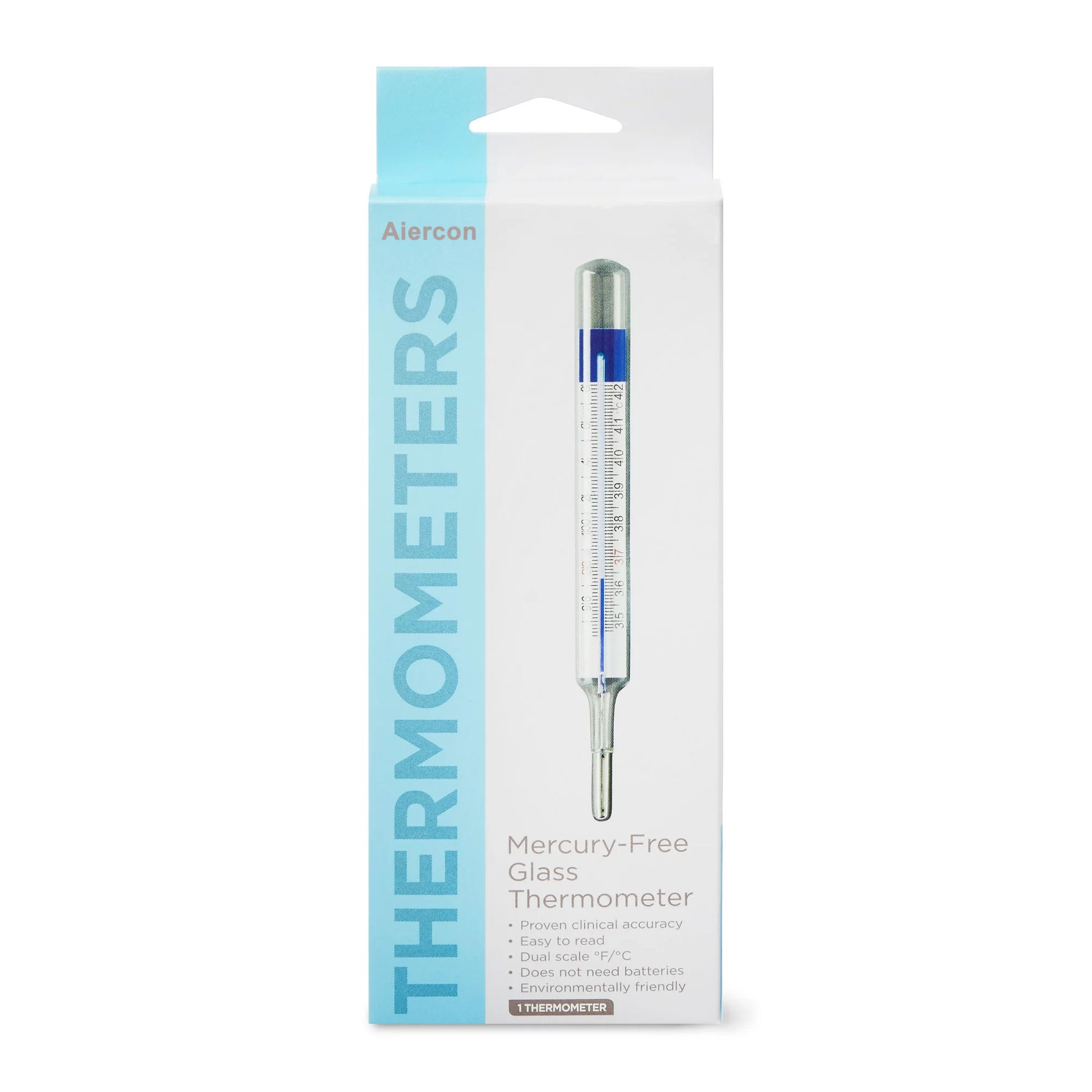 Tend to your family's health and protect the environment with an Mercury-Free Glass Thermometer. This handy thermometer contains an environmentally-friendly alternative to mercury, and is safe to clean up with mild soap and water if it breaks. Simply place the thermometer under the tongue for 3 minutes for proven clinical accuracy. The dual Fahrenheit and Celsius readout is easy to read, and it requires no batteries. Help keep your family healthy this season with an Mercury-Free Glass Thermometer.